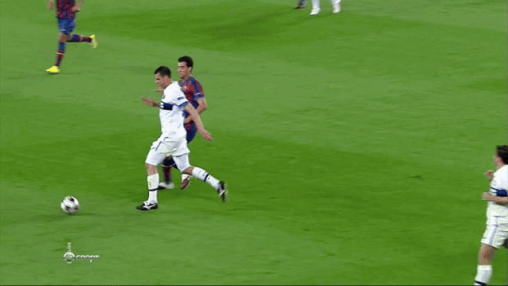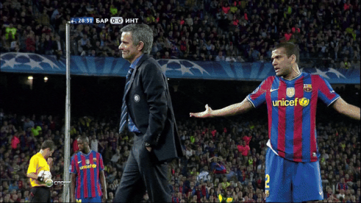На групповом этапе в Италии сыграли 0:0, в Испании «Интер» уступил 0:2. Снова пересеклись уже в полуфинале – Мотта вышел в 4-2-3-1 вместе с Эстебаном Камбьяссо в центре поля, а итальянцы красиво обыграли «Барсу» 3:1. Нечто грандиозное ожидалось на «Камп Ноу» – испанцам нужно было отыгрывать два мяча.
