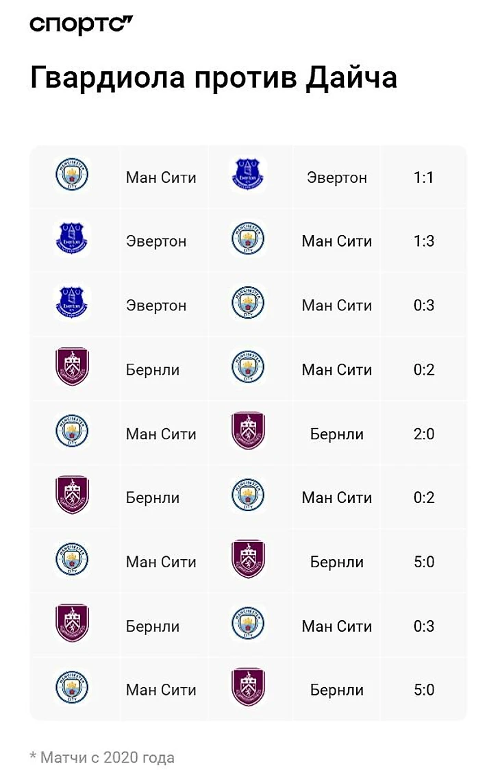 С прошлой ничьей «Бернли» прошло почти шесть лет. Удивительная статистика даже с учетом колоссальной разницы в классе команд этих тренеров. Общая разница мячей унизительная – 53:7.