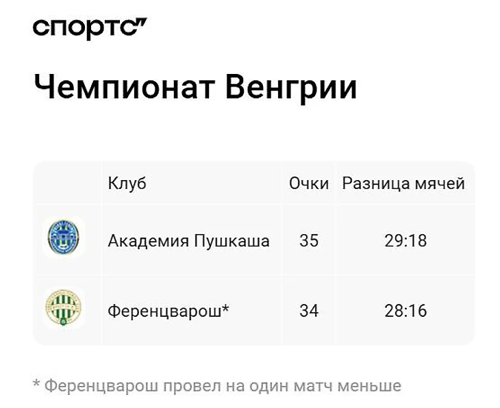 Весьма вероятно, что «Ференцварош» все же заберет титул, пока идет в таблице вторым с минимальным отставанием, но есть игра в запасе. Лидером красуется «Академия Пушкаша».
