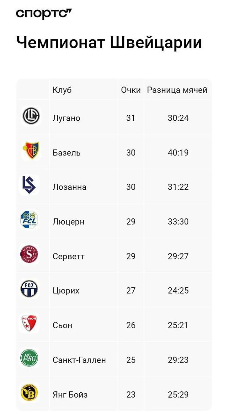 «Лугано» лидирует, но реальность такова, что девять клубов из двенадцати участвуют в чемпионской гонке. Еще один удивительный статистический факт – после восемнадцати туров все проиграли как минимум по пять матчей.