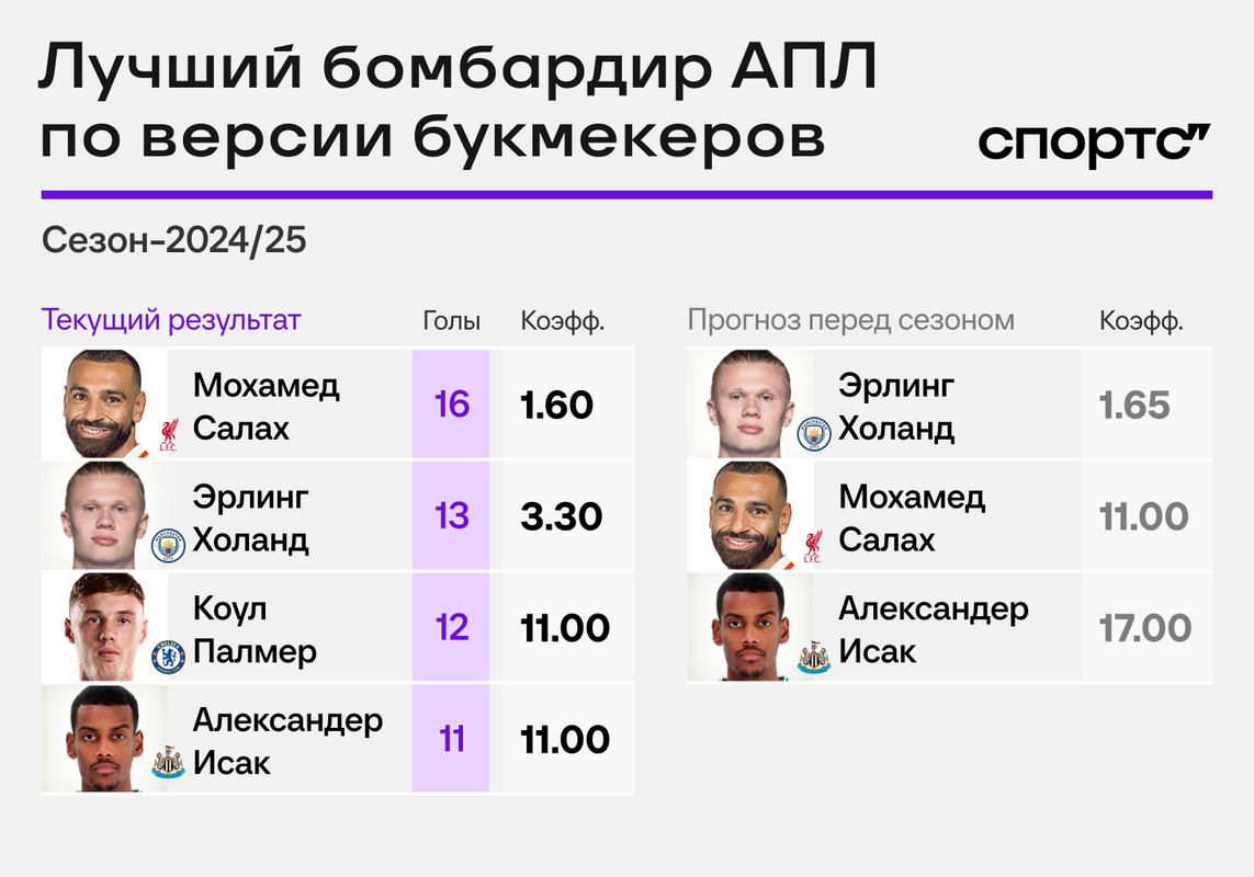 АПЛ: Холанд начинал без конкурентов, а теперь гонится за Салахом