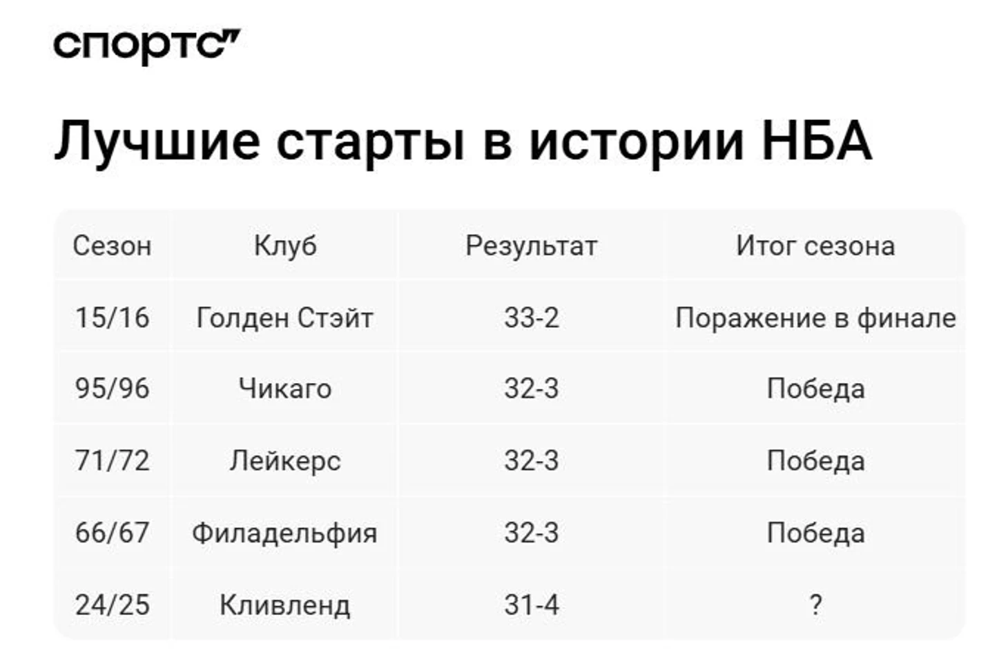 Сейчас «Кливленд» идет почти по графику «воинов», но уже чемпионского статуса: в 2016 году были легендарные 73 победы в регулярном чемпионате и новый рекорд. Эксперты уже аккуратно начинают подогревать «Кавальерс» в контексте исторической гонки.