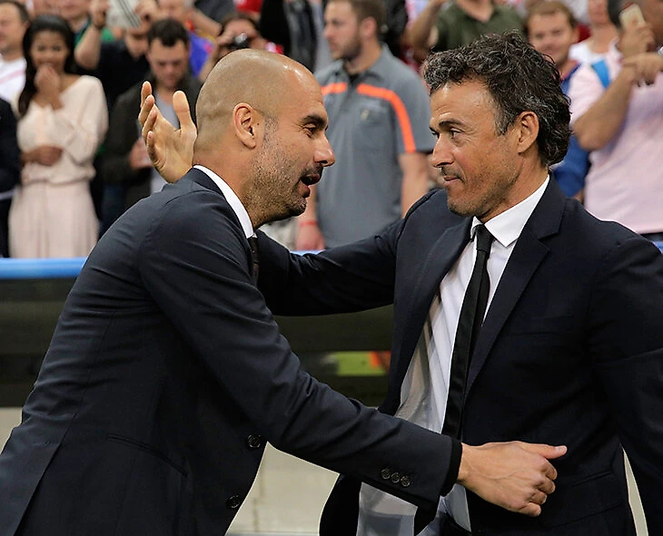 Как тренеры они пересекались четырежды. По две победы: «Барса» Энрике дома громила «Баварию» Пепа в полуфинале ЛЧ-2014/15 (3:0) и «Сити» на групповом этапе в 2016-м (4:0), но проигрывала в Германии (2:3) и в Англии (1:3).  Когда «Барса» Энрике прошла «Баварию» Пепа, затем обыграла в финале «Ювентус».