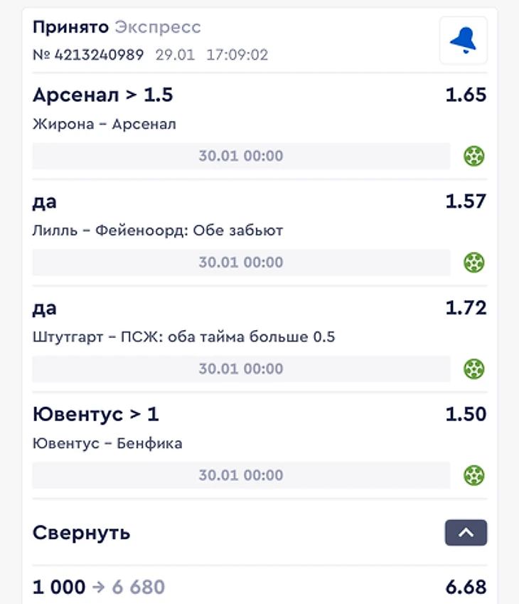 Экспресс №1. Лига Чемпионов. Коэффициент 6.68