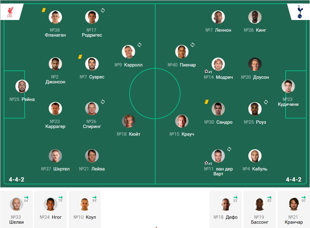 Но начали очень бойко: уже на девятой минуте после углового мяч отскочил к Рафаэлу ван дер Варту и тот с линии штрафной зарядил по воротам Пепе Рейны. А на 56-й Лука Модрич без особых проблем реализовал пенальти, который для него организовал Стивен Пиенар. Так «Тоттенхэм» впервые за 13 лет выиграл на «Энфилде» – 2:0.