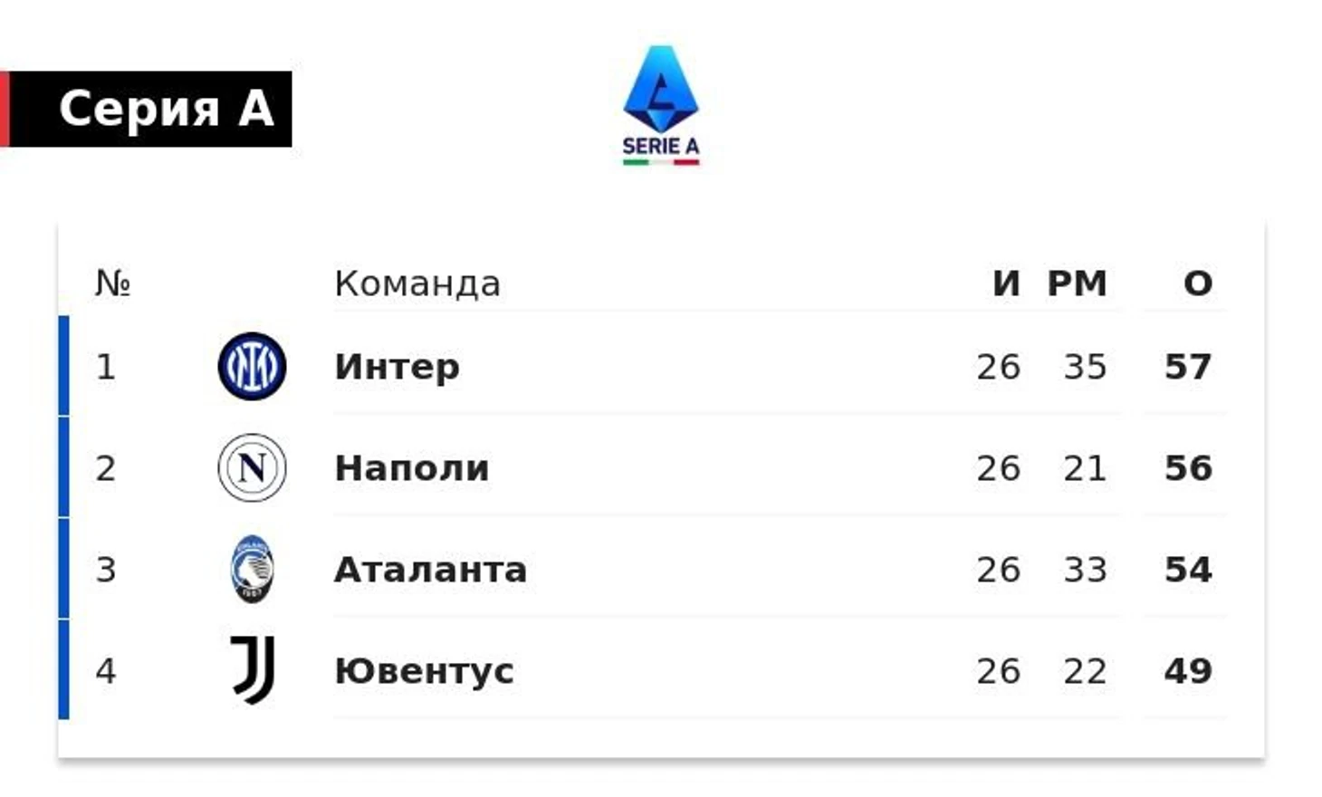 Очевидного лидера пока нет. Основная разборка закипает между «Наполи» и «Интером», недалеко подстерегает «Аталанта».