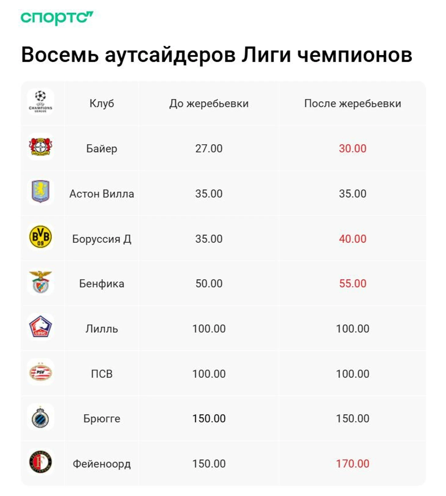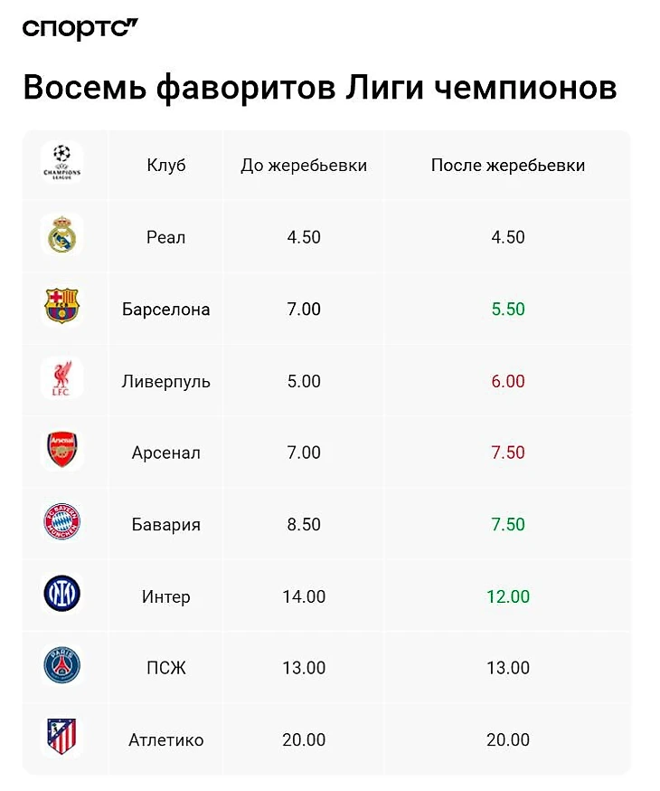 Неудачно сложился жребий для «Ливерпуля». Красные, конечно, будут фаворитами в противостоянии с «ПСЖ», но общая вероятность победы понизилась. Теперь у той же «Барселоны» как минимум на одного проходного соперника больше. В связи с этим «Ливерпуль» и подвинули в линии.