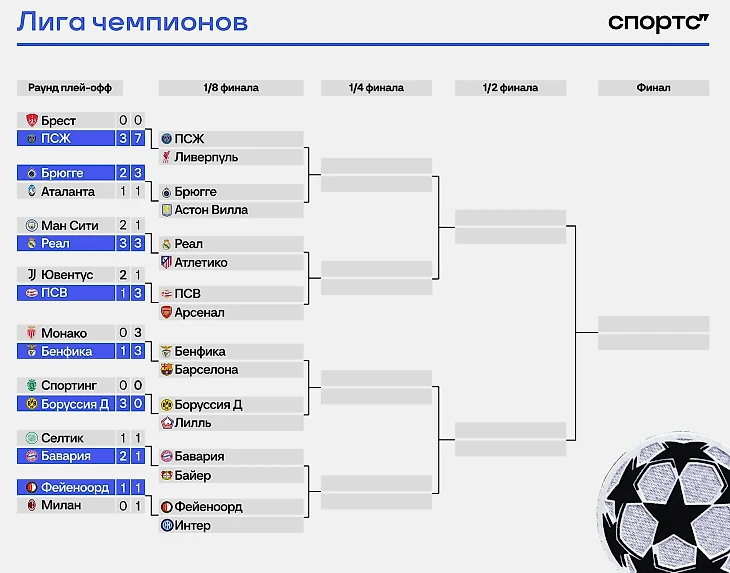 Радуются и в Бельгии – «Брюгге» больше не последний. Бельгийцы попали на «Астон Виллу», дальше могут сыграть с «Ливерпулем» или «ПСЖ». Здесь нельзя сказать про легкий жребий. Последним теперь стоит «Фейеноорд». Нидерландцев отправили в убийственную компанию с «Арсеналом», «Атлетико» и «Реалом».
