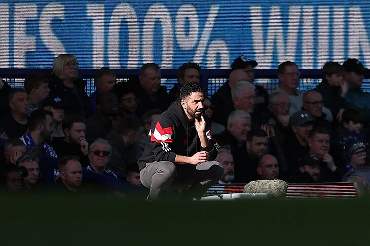 Это был 22 матч для Рубена Аморима в «Манчестер Юнайтед». Пока график по очкам просто ужасный: 1,52 за игру – хуже, чем у всех постоянных тренеров «дьяволов». Формально обошел Ральфа Рангника (1,45), но немец все же был во временном статусе.