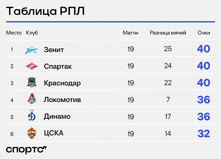 Теперь в таблице чемпионата очень плотно: три команды на вершине (по 40 очков), а три еще не выпали из гонки. Даже ЦСКА сохранил надежду – в России отыгрывали и больше. Можно вспомнить героический сезон-2013/14 от команды Леонида Слуцкого с победной серией на финише.