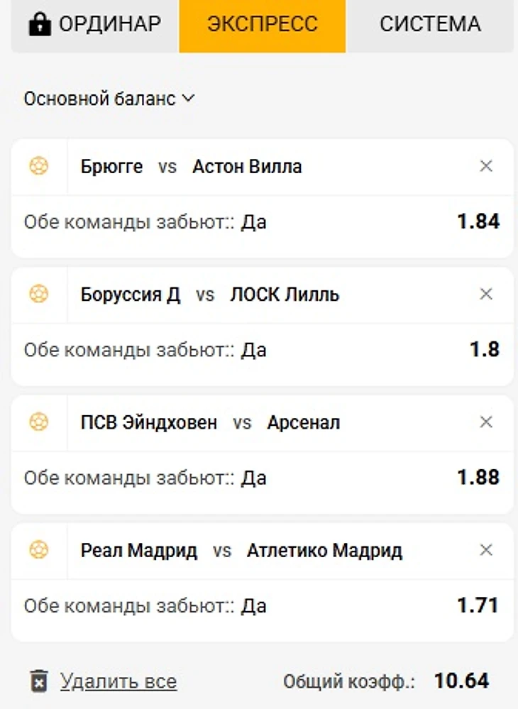 Сегодня Верю и жду голы в матчах ЛЧ. Причем через обмен голами.
