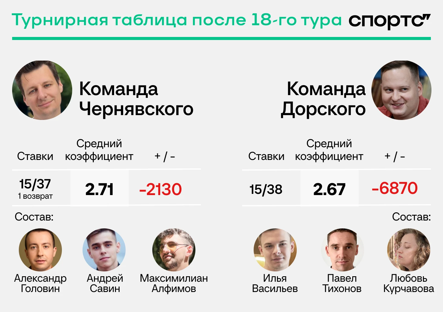 В первом противостоянии этого года Глеб Чернявский был точен в обоих прогнозах, а вот Александр Дорский – ни в одном. В итоге команда Чернявского по общему банку уже оторвалась от соперника.
