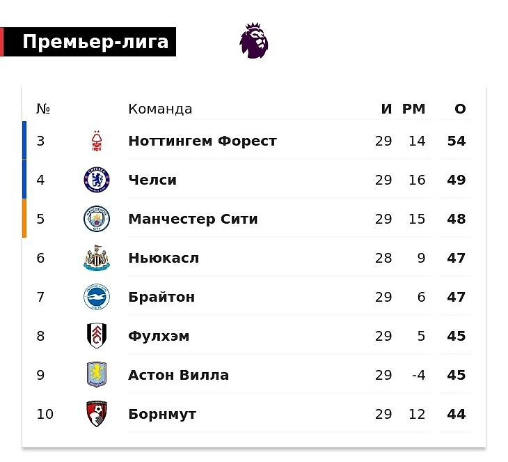 Суперкомпьютер Opta пока считает по классической схеме – шансы на попадание в топ-4. Видят финиш в таком порядке: «Ноттингем», «Манчестер Сити» и «Челси». Шансы остальных ниже 10%, но это именно на попадание в четверку, а не расчет на квалификацию в еврокубок.