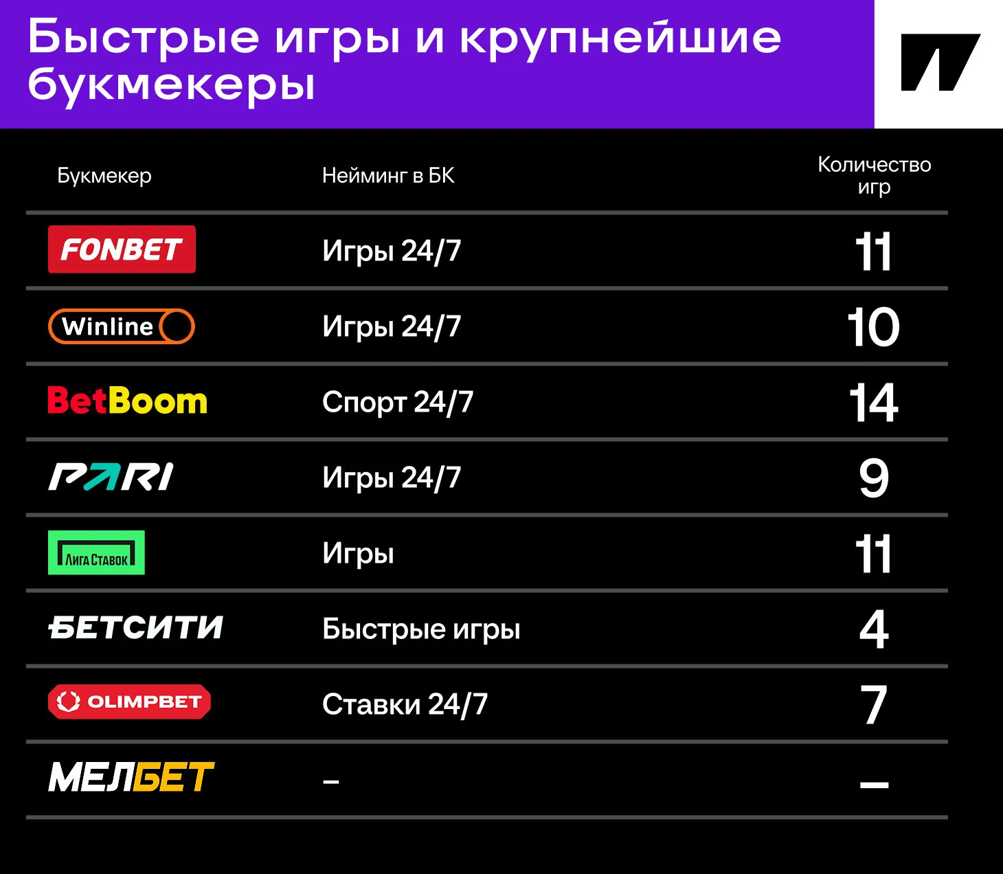 Быстрые игры становятся более востребованными. Три года назад они были только у четырех букмекеров, а сейчас среди крупнейших компаний их нет только у «Мелбет».