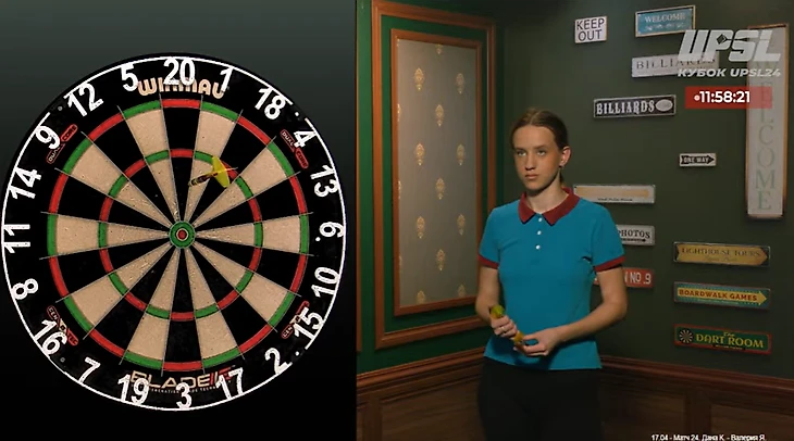 🎯 Классический дартс – два игрока стараются закрыть 501/301 очко в классическом матче за несколько подходов, на каждый по три дротика, победители определяются по количеству выигранных легов и сетов. Как на любом крупном турнире.