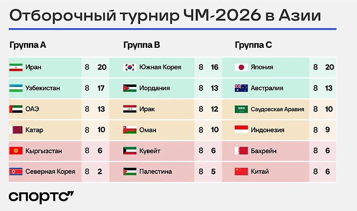 Второе место, скорее всего, разыграют Иордания, Ирак и Оман. Ирак был на чемпионате мира в 1986-м, а вот конкуренты могут квалифицироваться впервые.