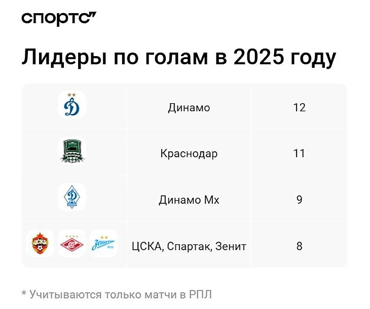 ● Только московское «Динамо» и «Краснодар» забили больше в пяти весенних турах.