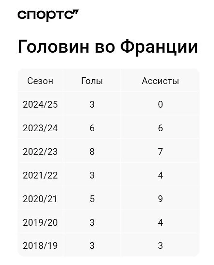 Начало сезона вышло ужасным по статистике. Головин выдал свою худшую серию во Франции. Суммарно во всех турнирах получилось 13 матчей без результативных действий. В сезоне-2019/20 было 12 игр подряд без голов и ассистов.