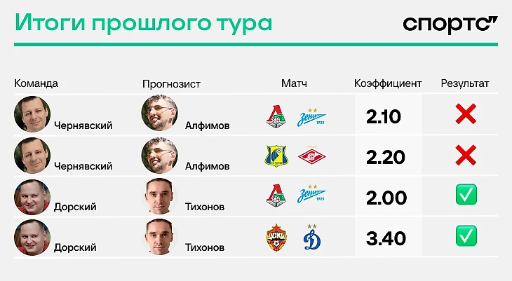 В прошлом туре из четырех прогнозов прошли два – оба у Павла Тихонова. Максимилиан Алфимов не угадал.