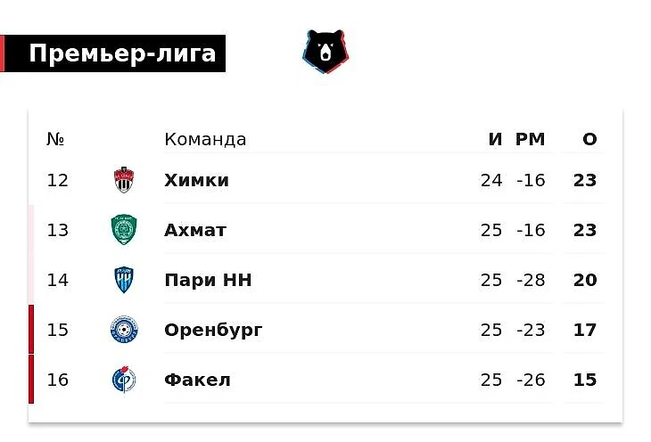 Все же «Оренбург» и «Факел» уже давно скидывали в Первую лигу: коэффициенты на вылет аутсайдеров понижались с каждым туром, «Оренбург» вообще стоял уже за 1.05. Команда Владимира Слишковича выиграла три матча из пяти и теперь уже угрожает «Пари НН» с «Химками».