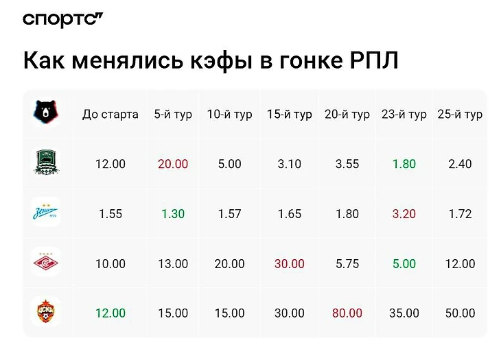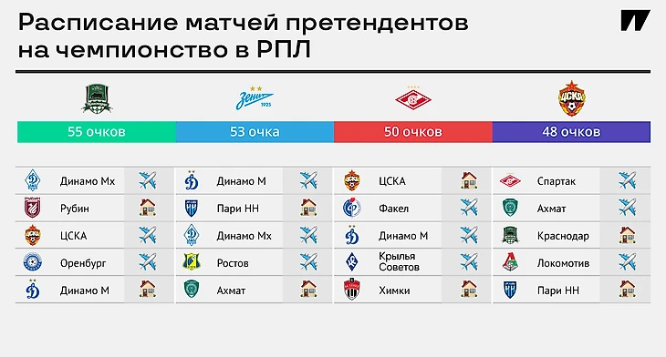 Шансы на титул в РПЛ: «Спартак» еще цепляется, ЦСКА отвалился, «Зенит» выше «Краснодара»