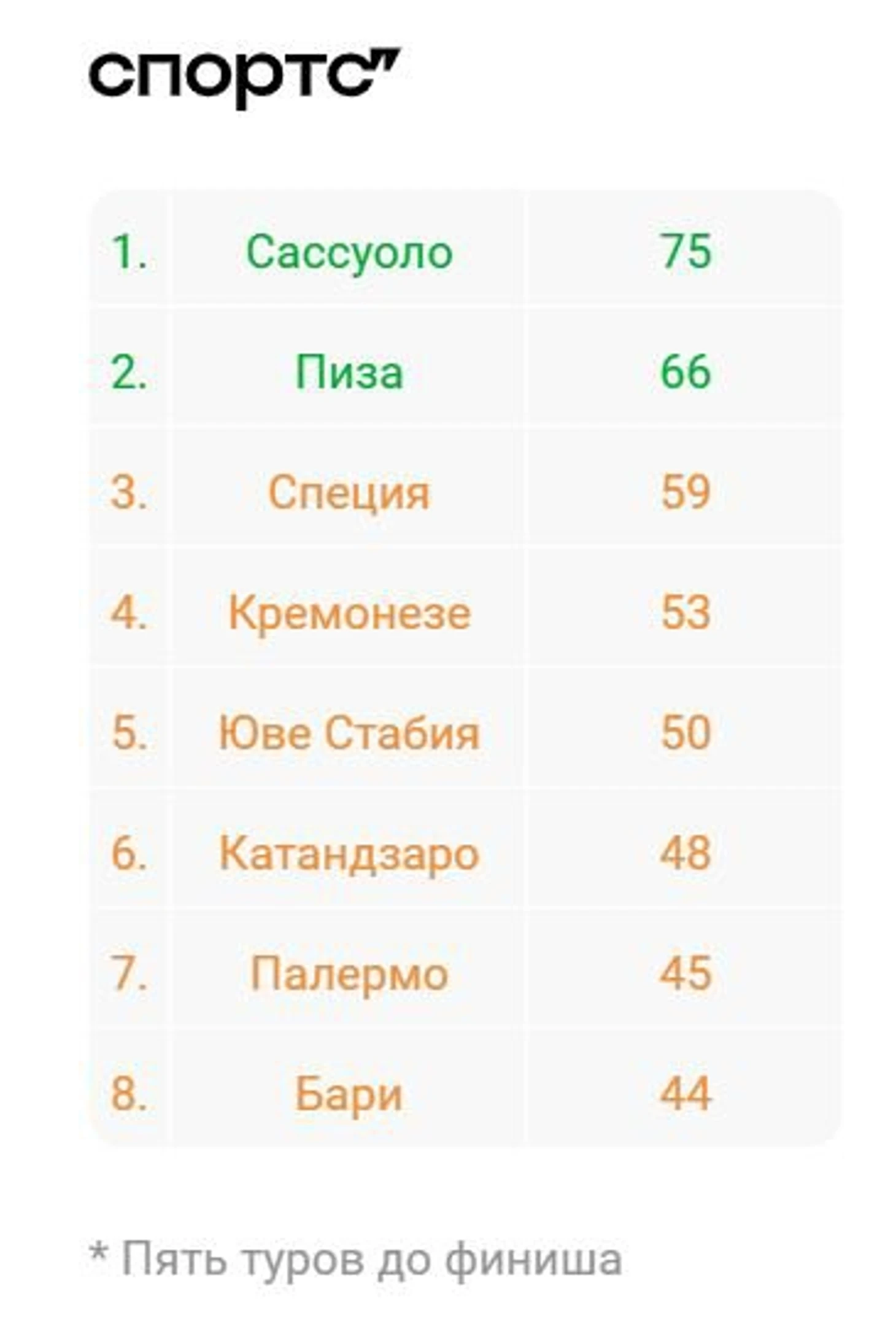 «Сассуоло» уже обеспечил себе возвращение. Результат был предсказуемым – до сезона давали 1.20 на победу в лиге. Клуб, конечно, подтащил преданный Доменико Берарди. У местной легенды: 6 голов и 12 ассистов – просто развлекался.