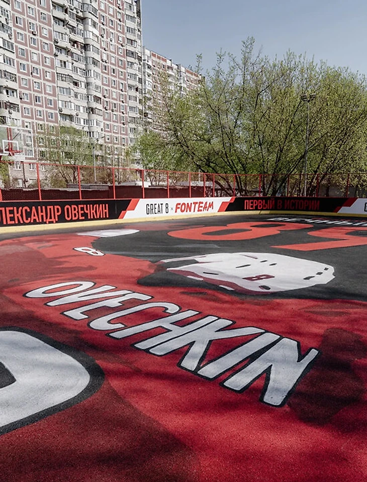 Но FONBET не остановился на этом и реконструировал хоккейную коробку в родном районе Овечкина. Новый спортивный арт-объект, посвященный финалу Великой погони Ови за Гретцки, располагается на улице Флотской. Там юный хоккеист начинал свой спортивный путь.