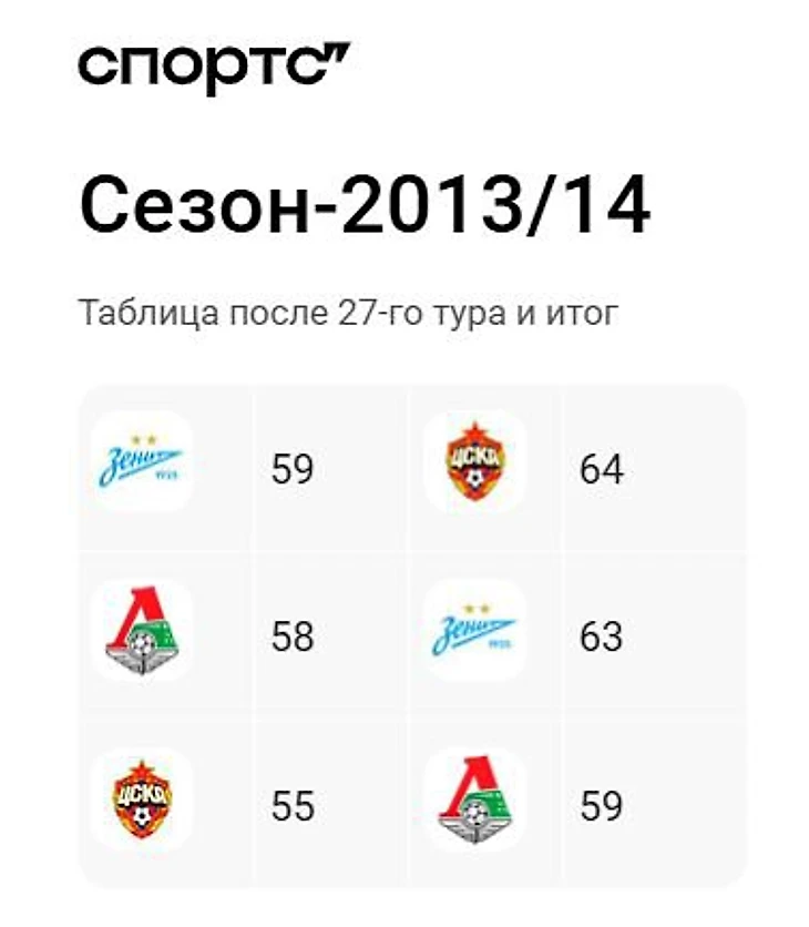 Интересно, что последним титул за три тура до финиша упускал именно действующий чемпион из Санкт-Петербурга. В сезоне-2013/14 «Зенит» настолько увлекся борьбой с «Локомотивом», что забыл о ЦСКА, который отставал на четыре очка. Финиш команда Андре Виллаш-Боаша провалила:
