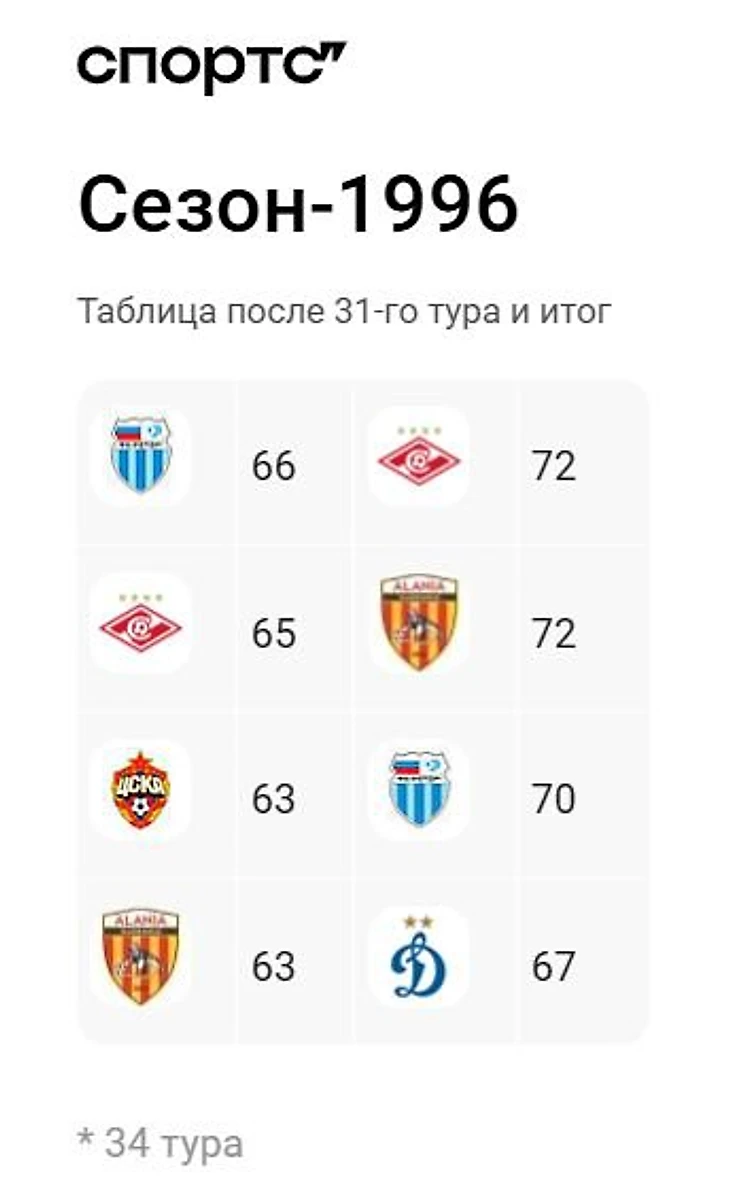 Третий сюжет – из середины 90-х. Самый безумный. За три тура до финиша «Ротор» шел первым, но лидер посыпался, отдав инициативу «Алании» и «Спартаку». Москвичи дома не обыграли «Ростсельмаш», позволив конкурентам сравняться. В заключительном туре «Спартак» в скандальной встрече победил «Зенит», у которого наошиблся Роман Березовский. Дело дошло до «Золотого матча», где уже команда Георгия Ярцева дожала «Аланию».
