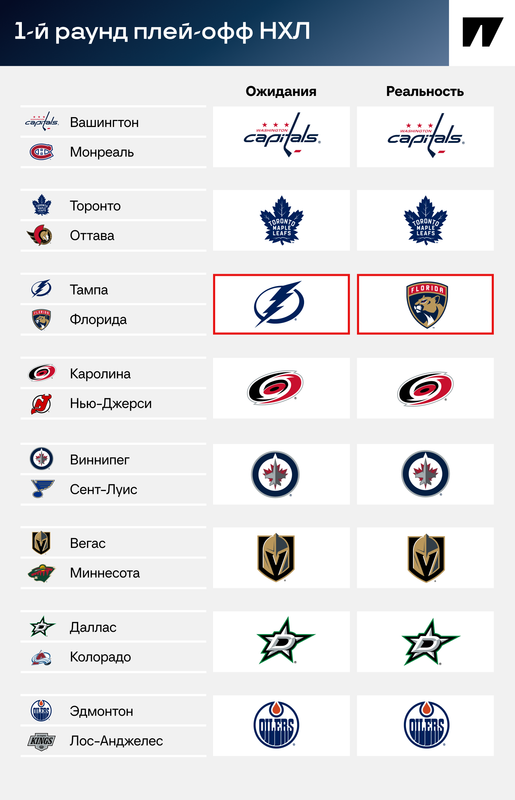 Первый раунд Кубка Стэнли-2025 получился увлекательным. Но насколько он был непредсказуемым? Смотрим, что сбылось из букмекерских прогнозов.