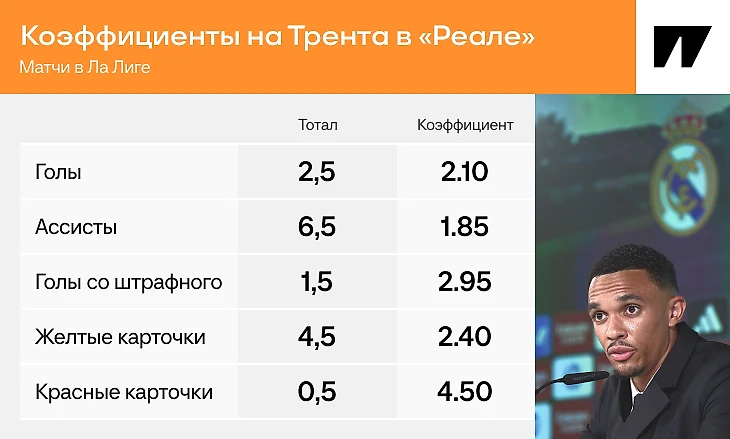 – Трент сделаем 20+ ассистов в Ла Лиге – 21.00.