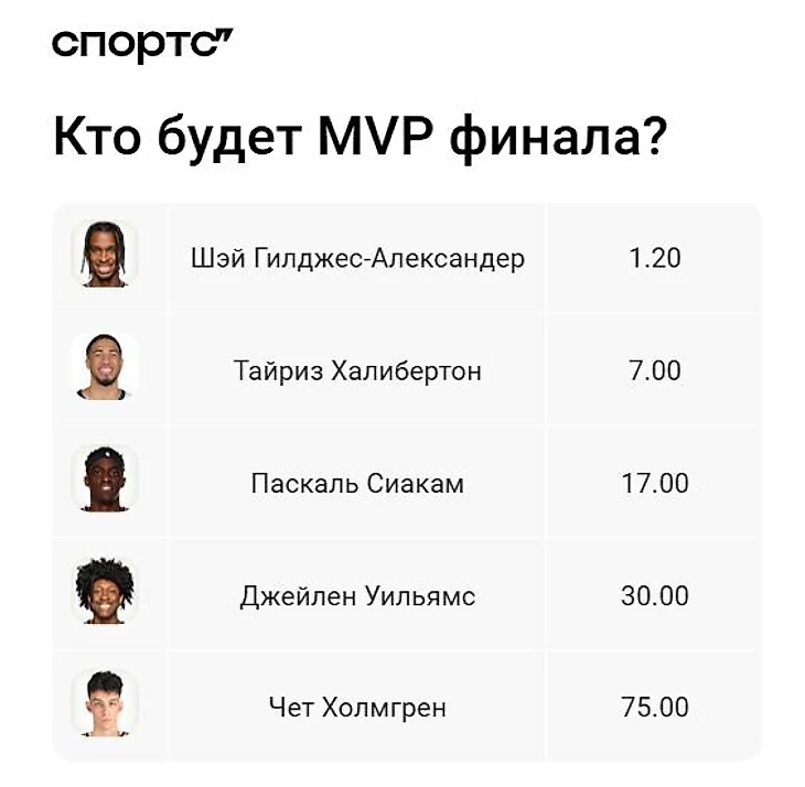 Сейчас расклад уже совсем другой. Халибертон предсказуемо уступает только Шэю Гилджес-Александеру. Лидер «Оклахомы» по коэффициентам почти совпадает со своей командой – 1.20. Халибертон теперь уже уверенно стоит вторым, хотя начинал плей-офф аж 22-м.