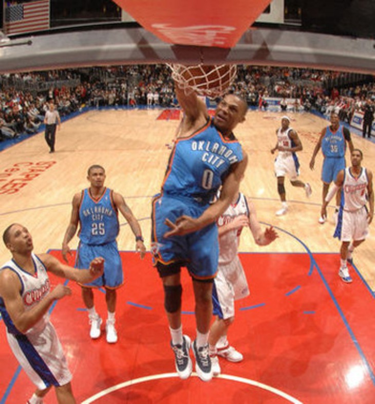 Весь сезон, мы следили за игрой одного способного темнокожего паренька из Оклахомы. Рассел Вестбрук его зовут. Бросает, отдаёт, перехватывает, сольные проходы просто прекрасны; словом, универсальный солдат. Незаменимый игрок для сегодняшних Оксов! Проштудировав линию на предстоящий матч, мы нашли замечательную ставку, отлично подходящую для нашего героя: