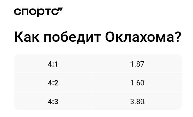 Общий коэффициент на победу «Оклахомы» в серии не поменялся – 1.18. Это соответствует примерно 85%.