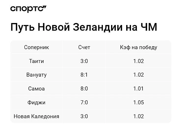 Новозеландцы впервые с 2010-го квалифицировалась на чемпионат мира: традиционно доминировали над слабыми соперниками в своей зоне.