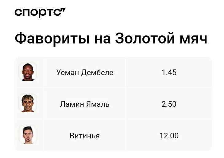 Полузащитник у британских букмекеров совершил рывок из ниоткуда аж на третье место в списке фаворитов. Вытолкнул из топ-3 Мохамеда Салаха. Впереди Витиньи пока только Усман Дембеле и Ламин Ямаль. Турнир в США может трансформировать португальца в главного соперника Усмана.