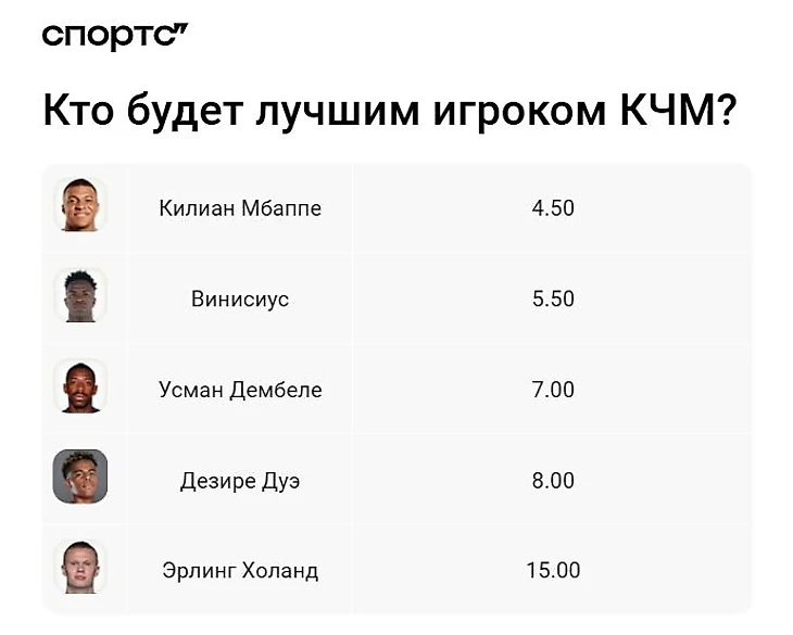 Автор дубля в финале Лиги чемпионов предсказуемо сменил статус у букмекеров. Теперь его оценивают почти на одном уровне с привычными фаворитами. В этот раз Дезире уступает только Мбаппе, Винисиусу и Дембеле.
