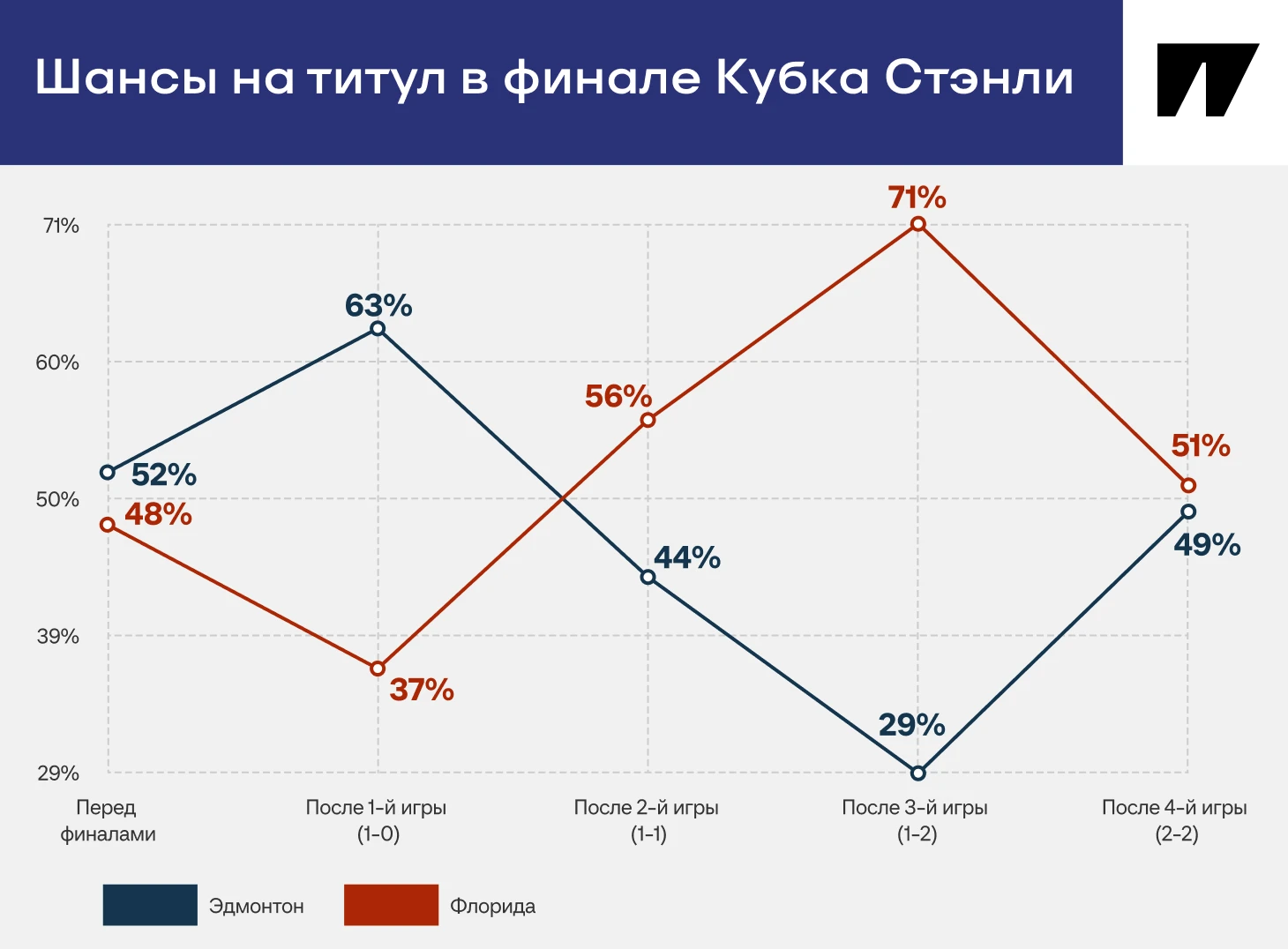 В финале Кубка Стэнли опять равные шансы. Хотя на камбэк «Эдмонтона» давали всего 9%