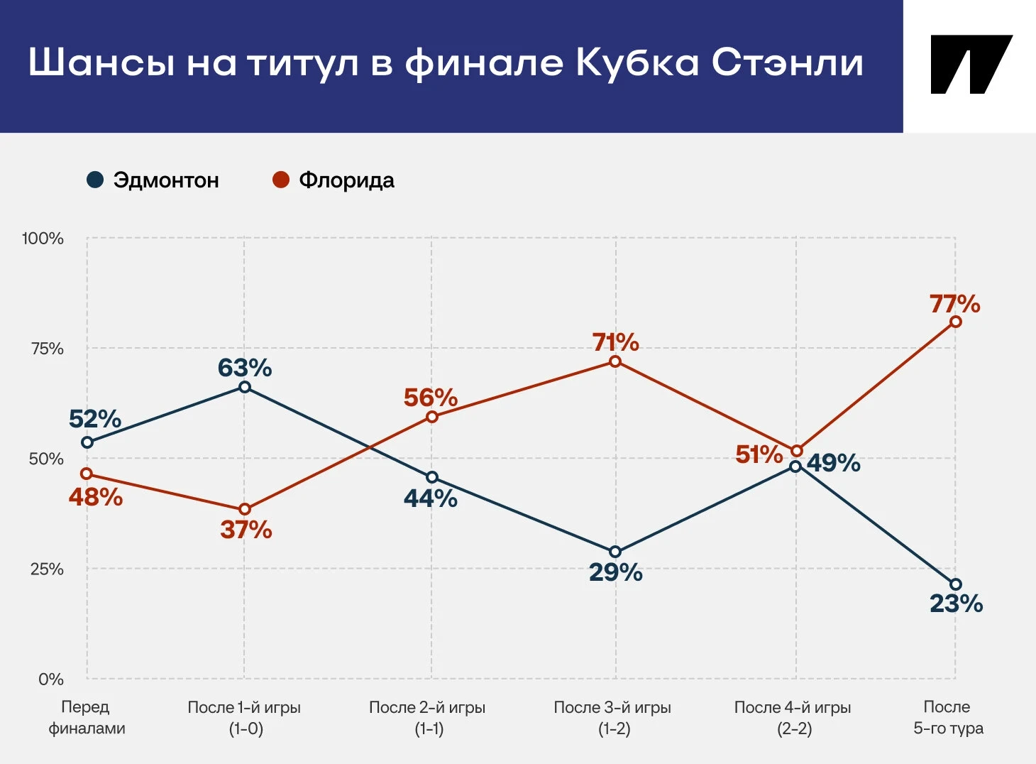 Перед шестым матчем «Флорида» вела 3-2 и котировалась явно выше «Эдмонтона». Вот так скакали шансы во время финальной серии – и вот какой разрыв был перед последней игрой.