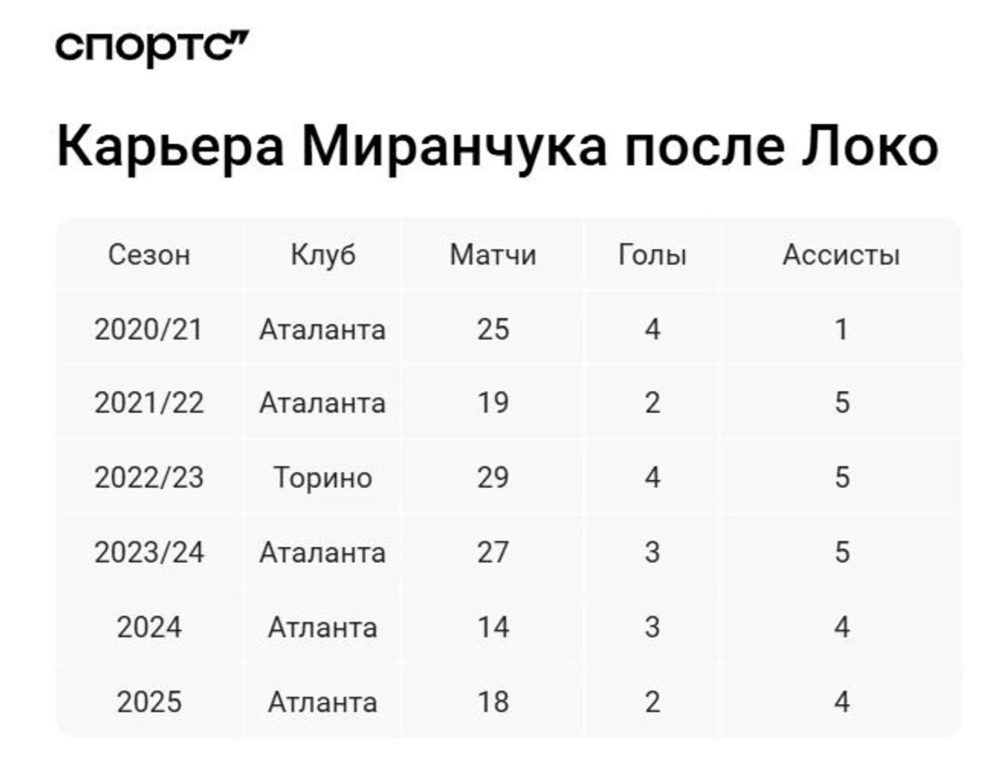 При этом надо уточнить, что на многих сайтах, в том числе и на Спортсе”, вы можете увидеть у Миранчука 2+3, но на официальном сайте МЛС числится 2+4. Лига считает еще и предголевые передачи: если траектория паса не была изменена, а адресат сразу же отпасовал забившему игроку.