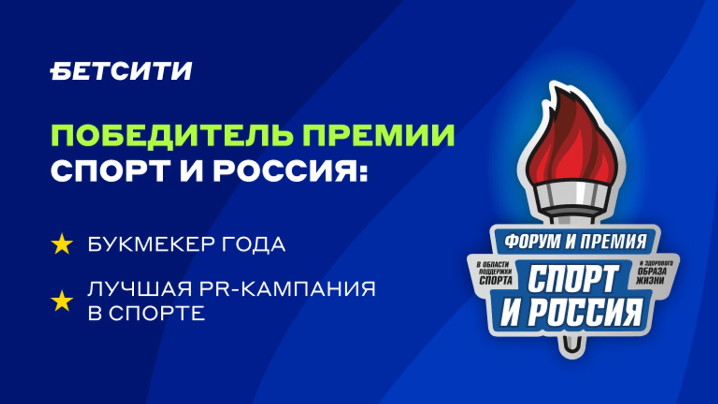 В 2023 году мы стали лауреатом премии «Спорт и Россия» в четырех номинациях — «Лучший спонсорский спортивный проект в Интернет-СМИ», «За вклад в популяризацию спорта в социальных сетях», «Лучший спортивно-рекламный ролик на ТВ» и «Лучшая концепция продвижения спортивной услуги». В 2024 году БЕТСИТИ признали «Лучшей букмекерской компанией».