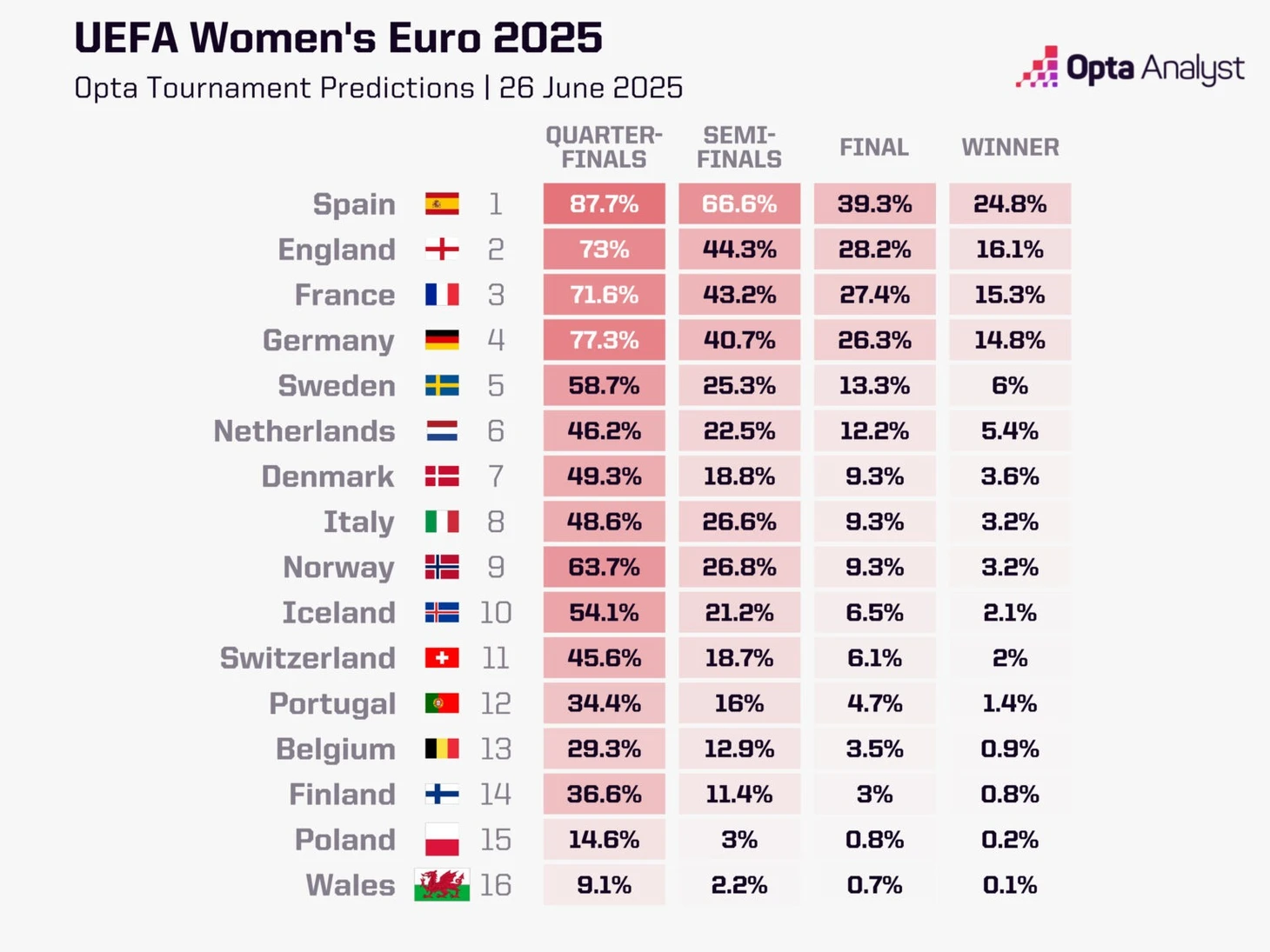 Выделяются Англия и Франция, хороши должны быть и Нидерланды. Половина из топ-6 претендентов на золото тут вместе.