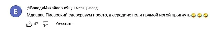 Писарский получил прямую красную карточку на 34-й минуте за фол против защитника Александра Эктова. Удалось удивить даже Сергея Карасева. Арбитр сначала не поверил, что фол был настолько грубым – пришлось смотреть повтор. Интересно, что еще до скандала один из самых популярных комментариев под обзором на официальном канале «РФС ТВ» был таким.