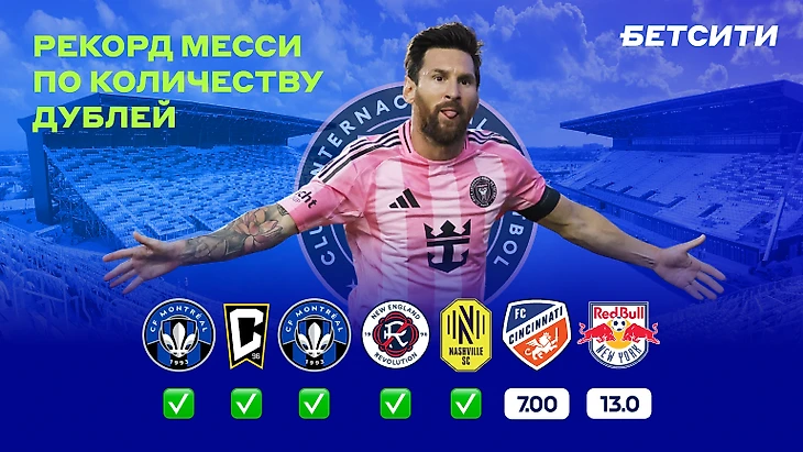 Наши аналитики запустили специальную линию на шансы Месси повторить и побить собственный рекорд. Уже ночью «Интер Майами» навестит «Цинциннати», а после команде Лео предстоит выезд к «Нью-Йорк Ред Буллз».