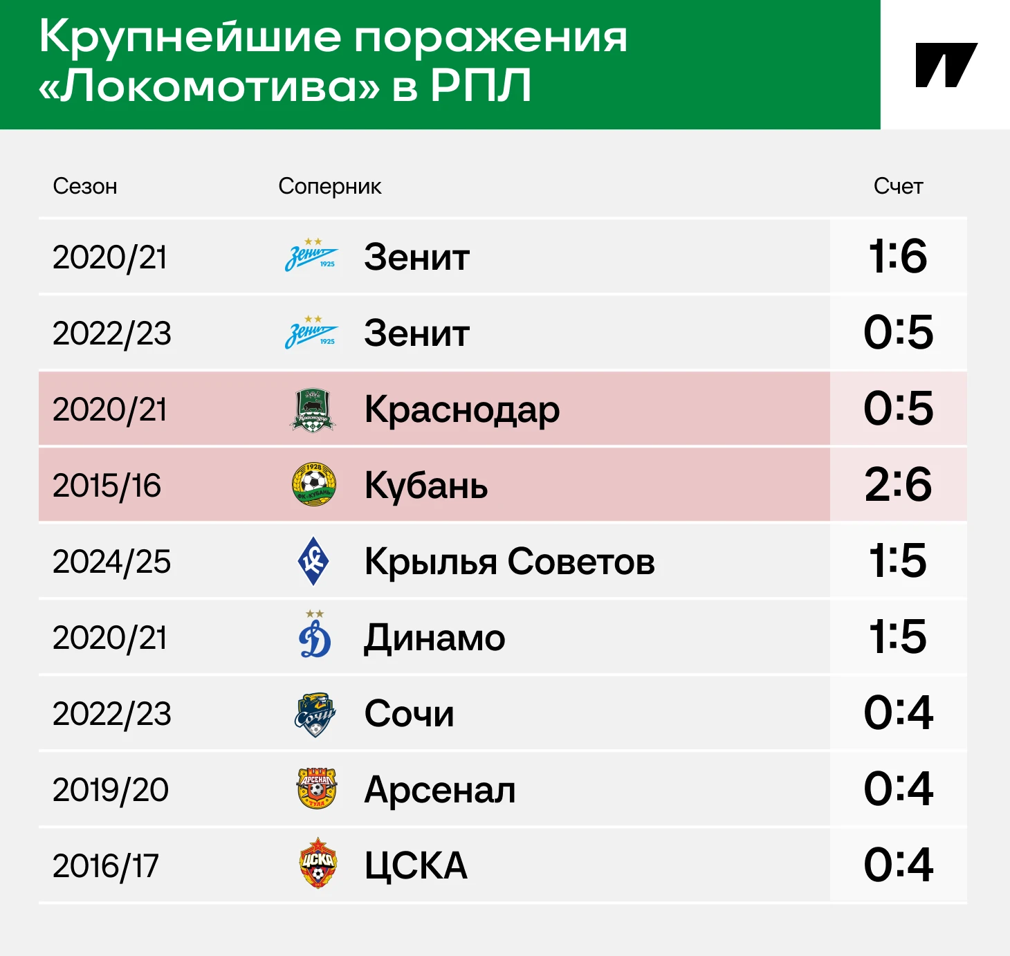Если взять девять крупнейших поражений «Локо» в РПЛ – а они были в четыре-пять мячей – то два из них состоялись в Краснодаре.