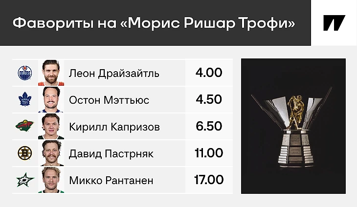 Букмекеры полагают, что у Кирилла может быть лучший сезон в карьере. Шансы на победу в гонке снайперов выше только у Леона Драйзайтля и Остона Мэттьюса. Пока Капризов ни разу не добирался до отметки в 50 заброшенных шайб.