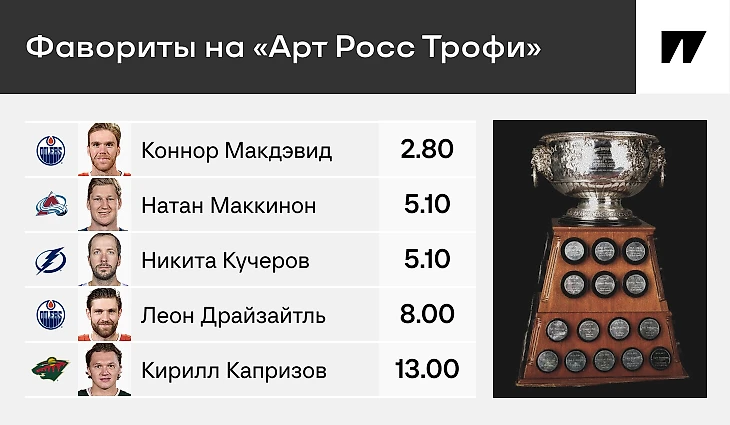 «Арт Росс Трофи» – награда лучшему бомбардиру. В рамках этой гонки пять лет подряд побеждают либо Кучеров, либо Макдэвид. С 2017-го только Леон Драйзайтль сумел вмешаться в своеобразную дуэль.