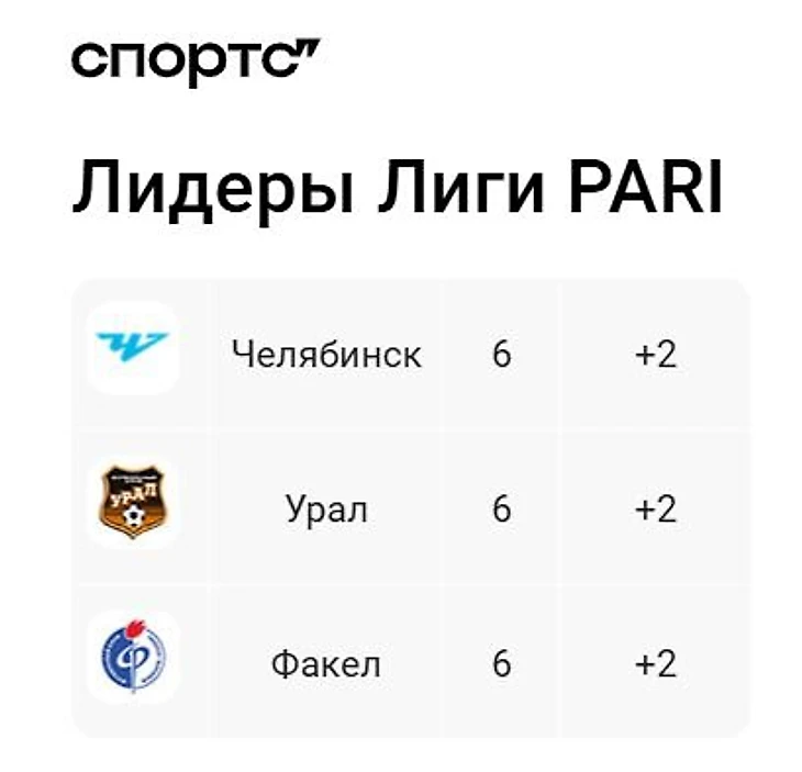 После двух туров в Лиге PARI троевластие: «Челябинск» и «Урал» лидируют с разницей мячей 4:2, «Факел» уступает только по забитым (2:0). Три клуба идут без потерь.