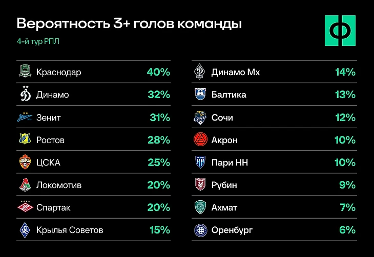 В прошлом туре из топ-5 фаворитов на 3+ гола справился только «Локомотив». А вот «Спартак» две недели подряд бил строго мимо всех позитивных прогнозов: всего один гол суммарно «Балтике» и «Ростову», хотя стояли первыми фаворитами на разгром.
