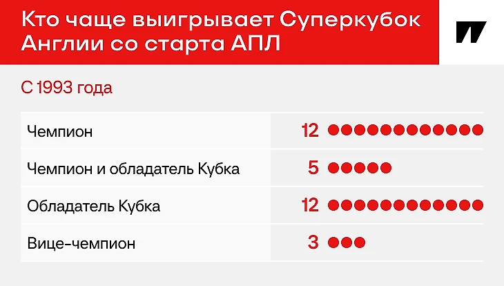 С 2014-го случился перекос в другую сторону – чемпион АПЛ побеждал в игре за Суперкубок только в трех случаях из 11: семь побед у обладателя Кубка, еще одна – у второй команды лиги.